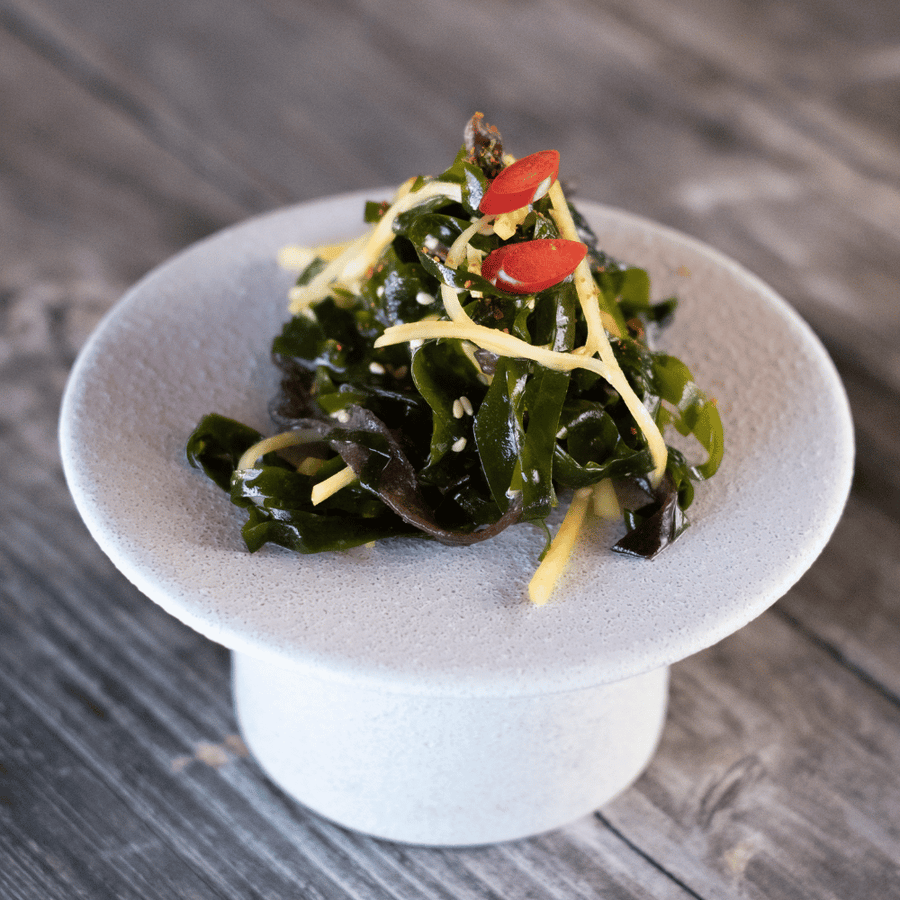 Ein harmonisch abgestimmter Salat aus Zuckertang-Algen, kombiniert mit knackigem Sesam, Miso und Reisweinessig. Die Rezeptur wird durch Togarashi-Gewürze, darunter Chili, Ingwer und Sansho-Pfeffer, abgerundet. Der Algensalat eignet sich ideal als Beilage oder für vielfältige asiatische Gerichte.